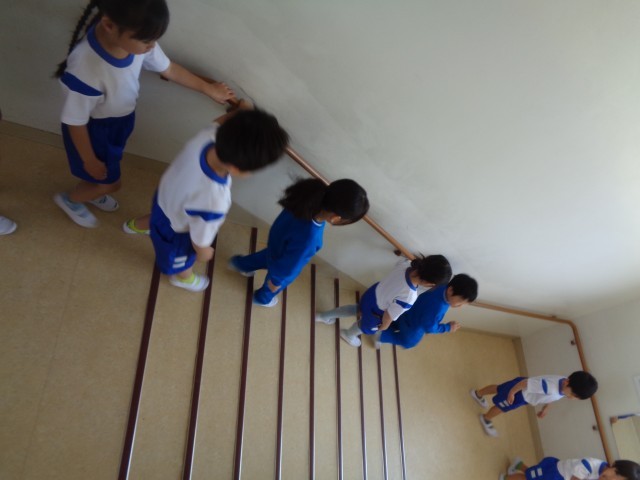 今朝の業前の時間には、1・4・5年生が避難経路確認を行いましした。