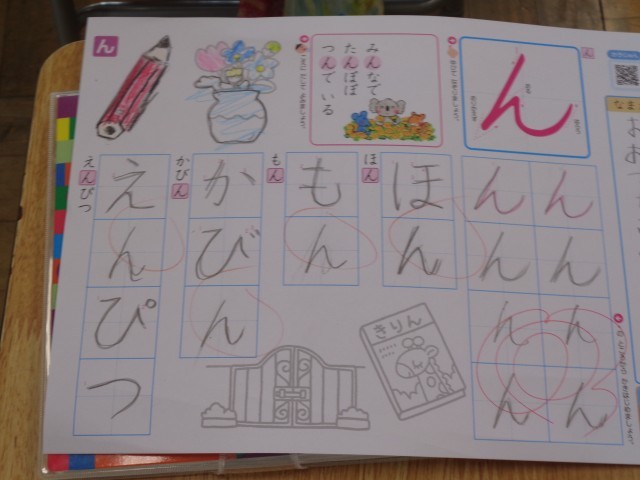 「ま」「ん」の学習をしました。