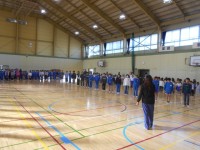 業前の時間に、全校のみんなで一緒に歌を歌ったりゲームをしたりして楽しい時を過ごしました。