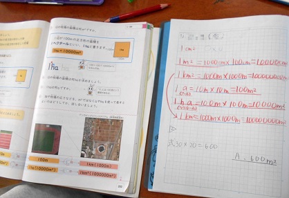 4年算数 面積 大きな面積の表し方を考えました。いろいろな面積の表し方を調べました。