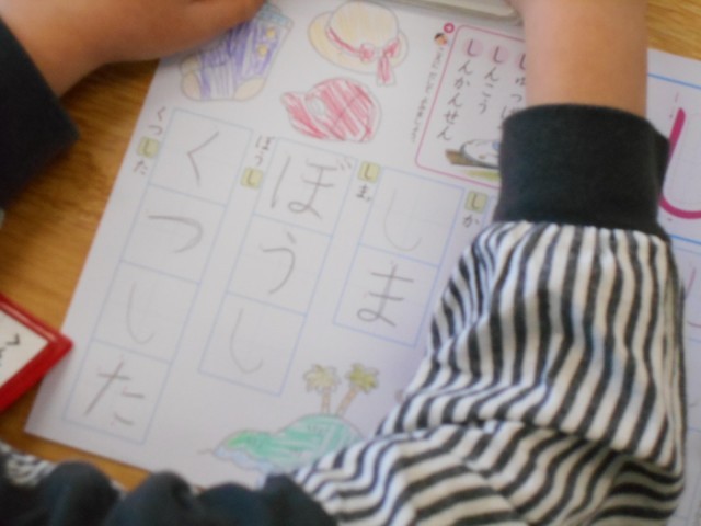 今日も1年生、ひらがなのお勉強です。