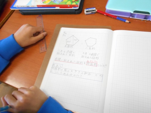 今日のめあては「多角形の内角の和はどのように求めればよいだろうか?」