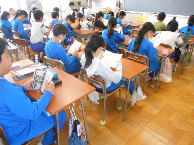 どの学年の児童も、自分の好きな本(コミックマンガ以外)を、自分で選び、毎朝じっくり読んでいます。一日のスタートが大変落ち着いた状態で始まります。