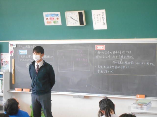 2時間目、5年生では、今日「天気と雲にはどんな関係があるのだろう?」という学習を進めていました。