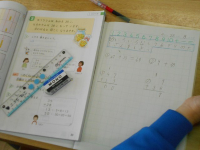 今日は、色々なくり上がりのある「たし算」に挑戦していました。