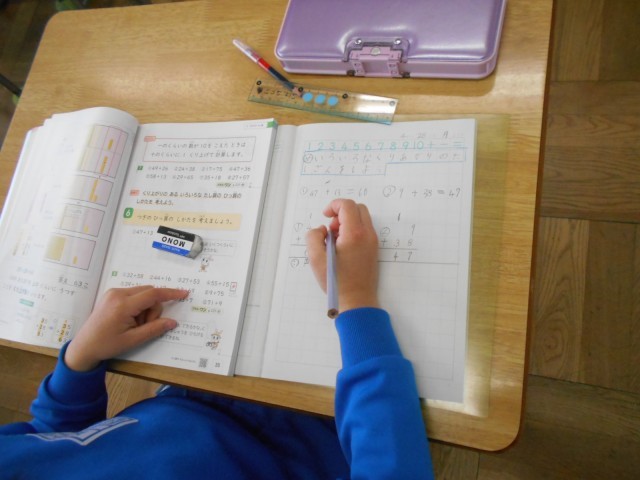 振り返りのあとには、学習問題を進めていました。慣れることが大切です。