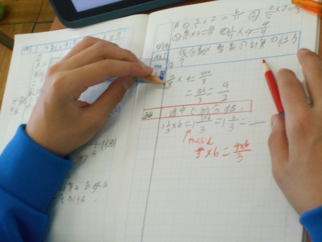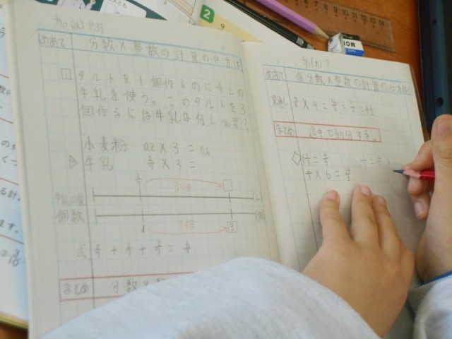 今日のめあては「仮分数と整数のかけ算の仕方は?」