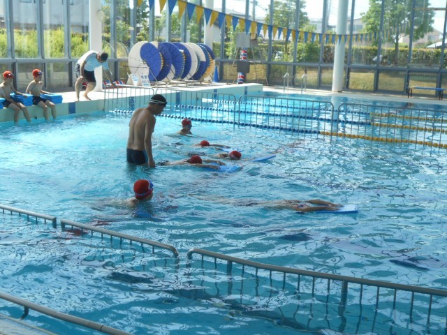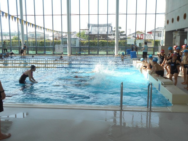 みずとぴあの指導員さんにお世話になって、4年生の水泳の授業が始まりました。