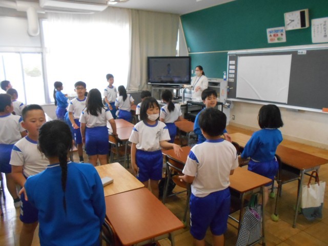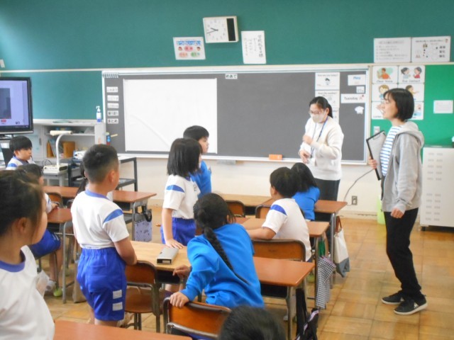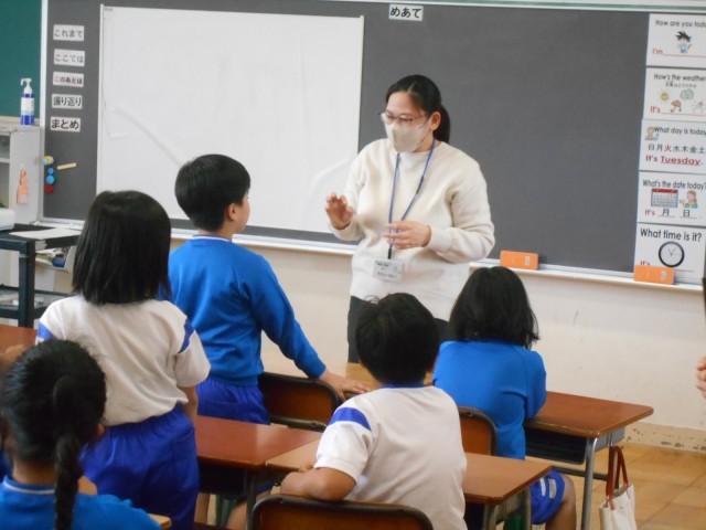 まずは、ALTの先生の指導のもと、楽しくコミュニケーション活動からスタートです。