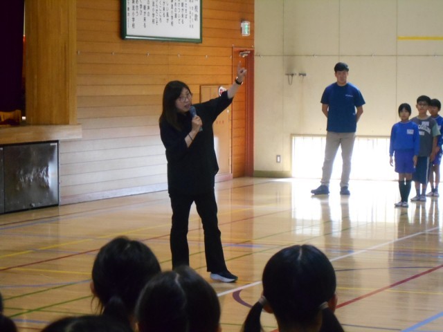 集会後には、安全担当の先生から登下校中の安全や、下校後の自転車のルールやマナーを守ることの大切さ、命を大切にすることの大事さを話していただきました。