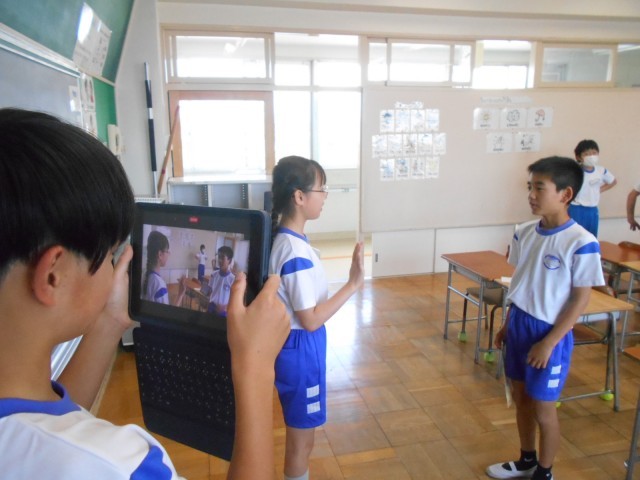 撮影した動画は、過日先生方が研修したロイロノートの機能を使って提出しました。