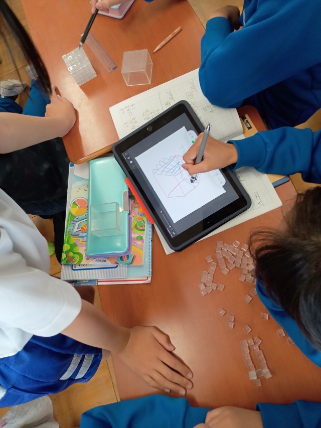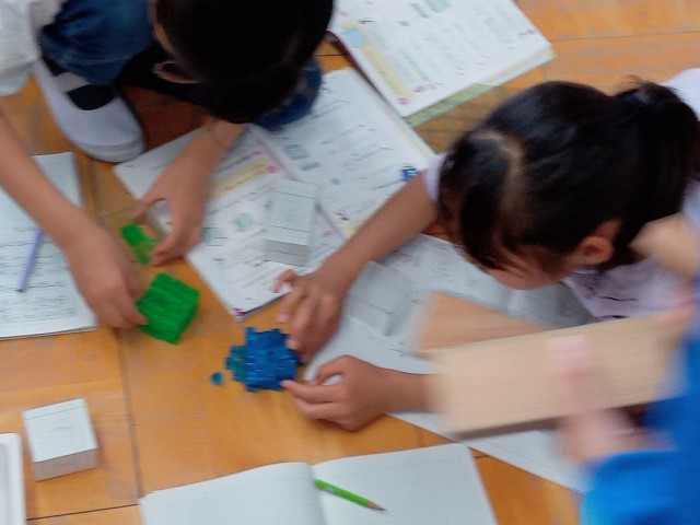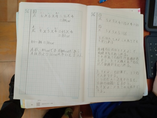 今日は、体積を求める公式について、みんなで脳みそに汗をかきながら考えました。