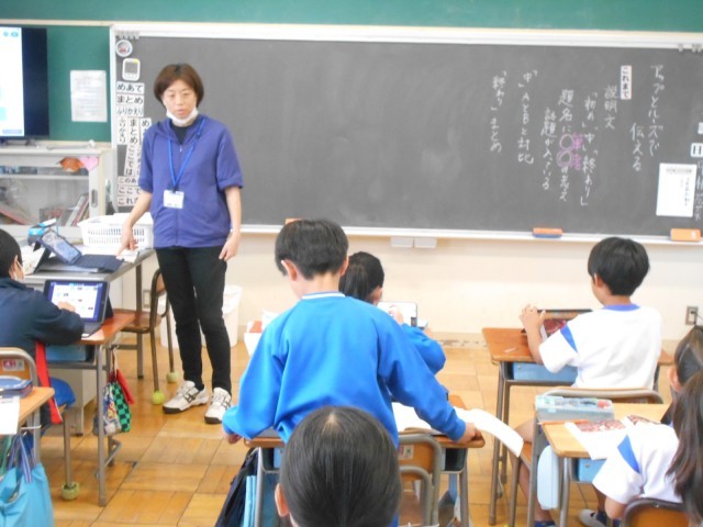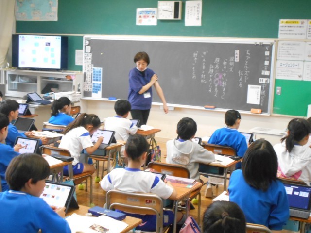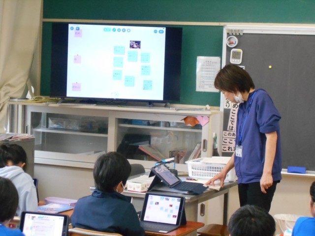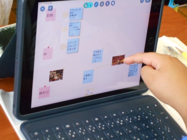 ロイロノートを使って、段落の相互の関係について考えながら、文章のつながりについて考えていました。
