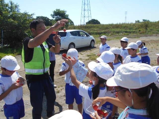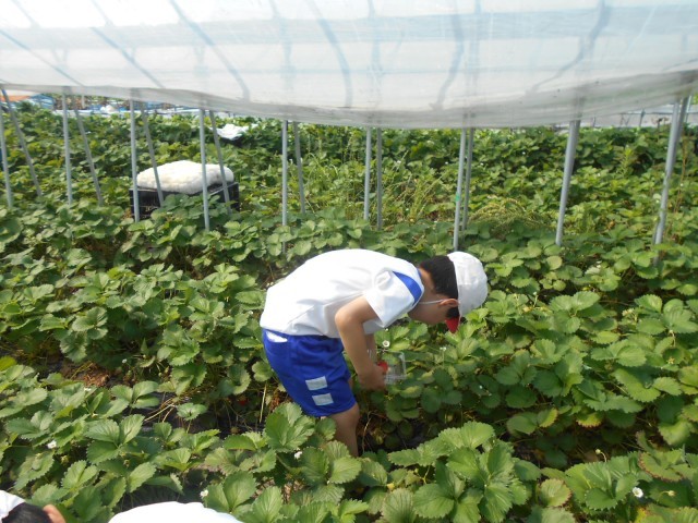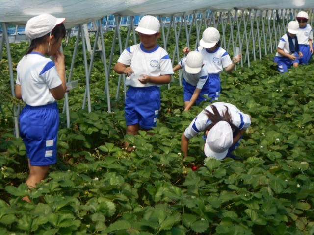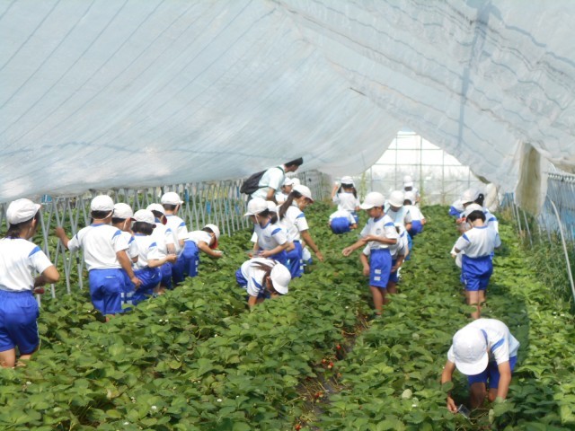5日(木)1・2時間目、2年生は校区にあるいちご農園の見学に行きました。