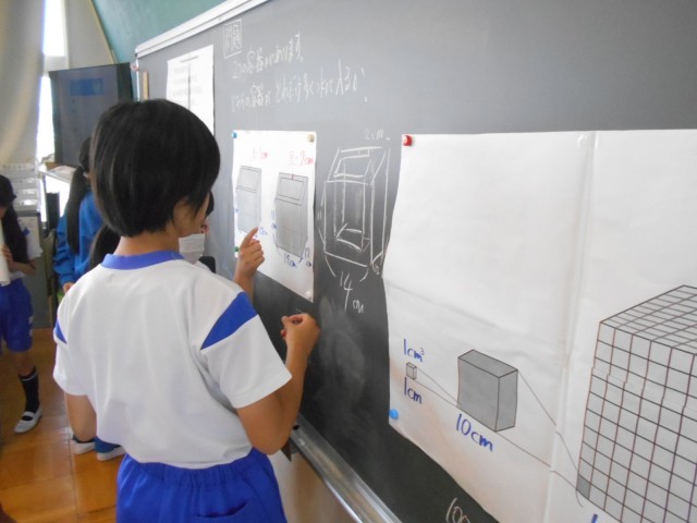 「体積」の学習が進み、その考えを下に今日は「容積」の学習に入っています。