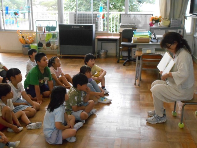 12日(木)今朝の業前の時間は、 今日は、低学年を対象とした「読み聞かせ」を行いました。低学年では、新しい学年になって初めての機会です。