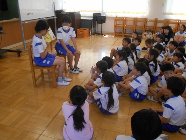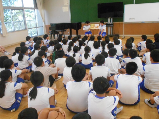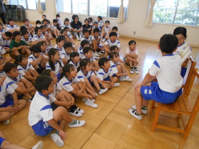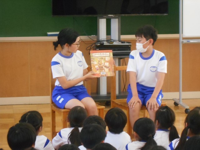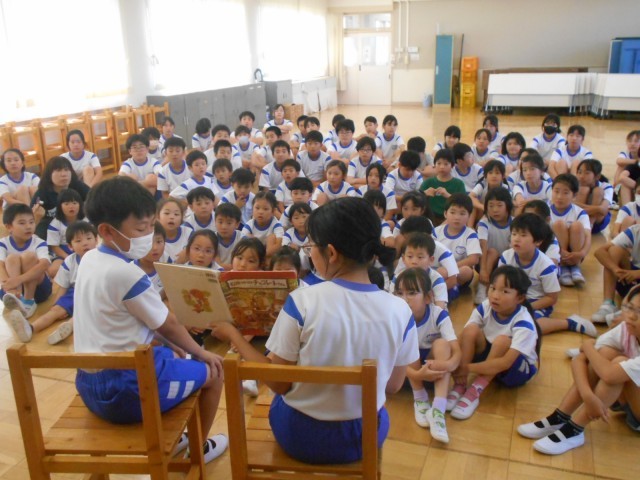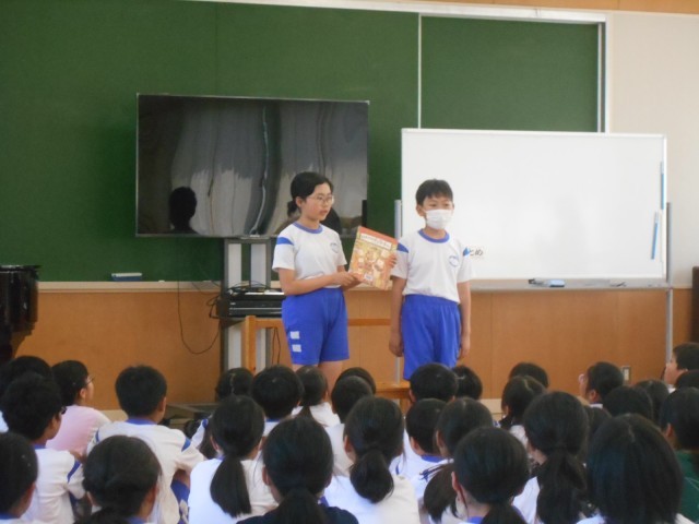 今日の昼休みに、先週の図書委員による低学年向けの読み聞かせにつづき、高学年向けの読み聞かせが行われました。