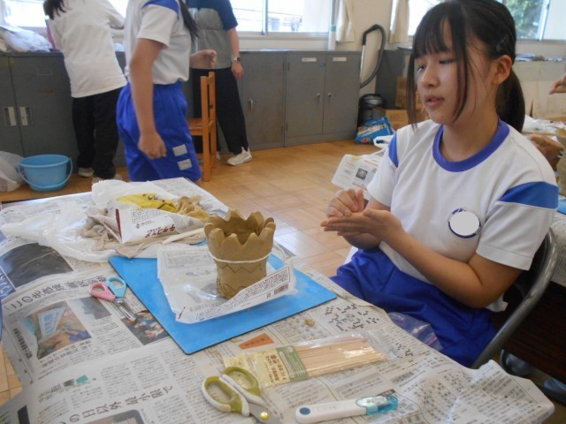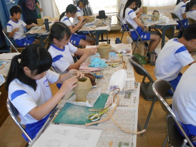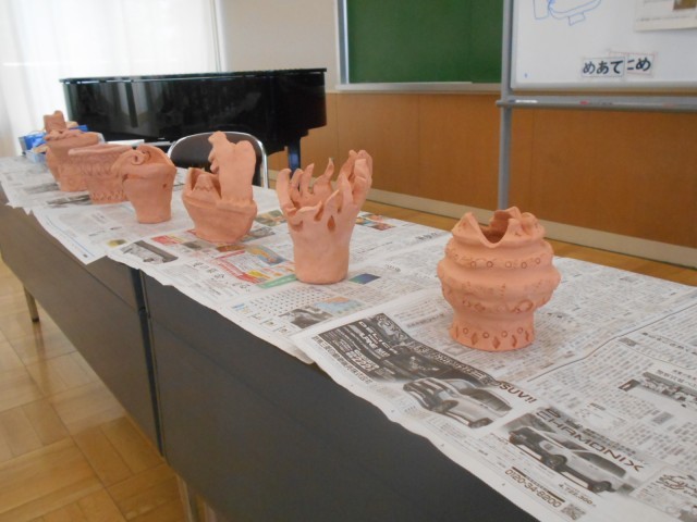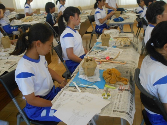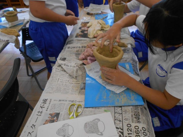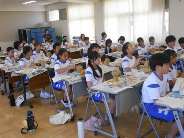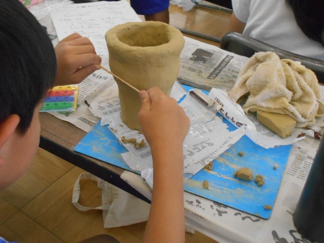 6年生は、図工の時間に歴史学習も兼ねて、講師を招いて「土器づくり」にチャレンジしました。