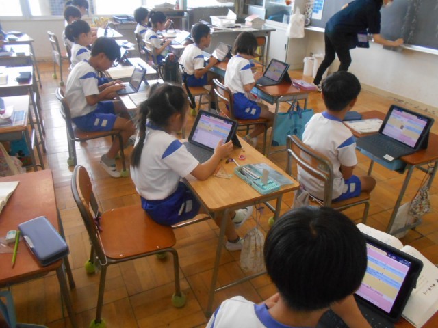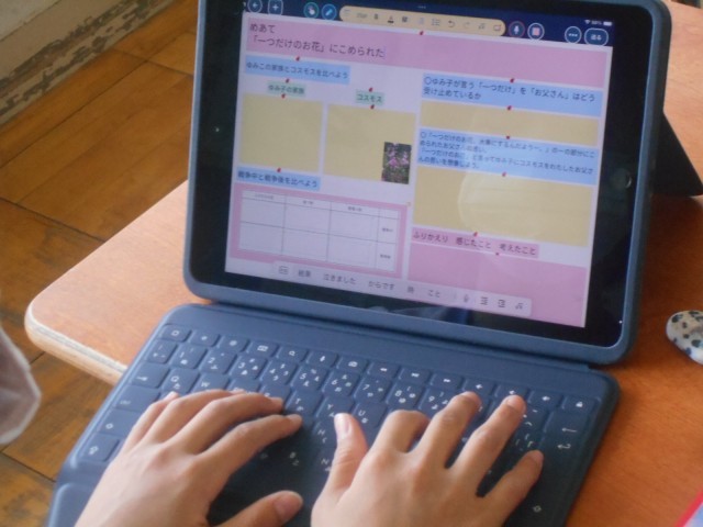 ロイロノートに今日のめあてを打ち込んで、スタートです。