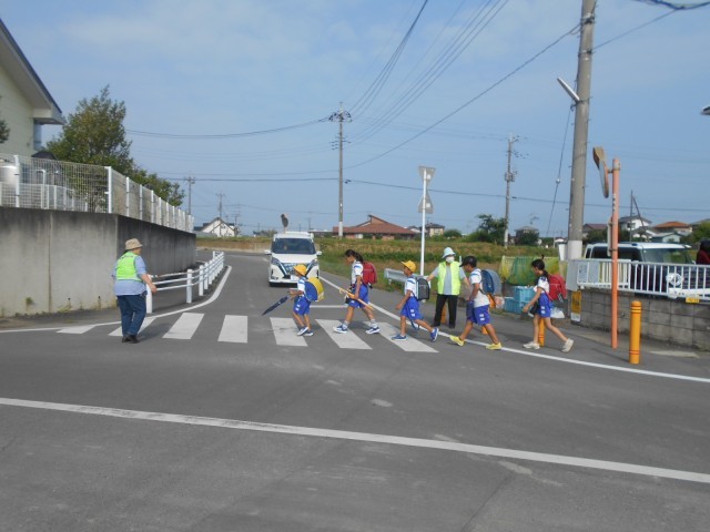 そんな中、全ての校門で民生委員児童委員の皆さんによるあいさつ運動が行われました。   交通当番の保護者の皆さんの交通安全見守り活動とともに、活動していただきました。 本当にありがとうございます。 7月に入り、1学期も残すところあとわずかになりました。猛暑の中ですが、子どもたちは「笑顔いっぱい・やる気いっぱい」で「たくさんの友だちと」仲良く登校できています。これからもよろしくお願いいたします。