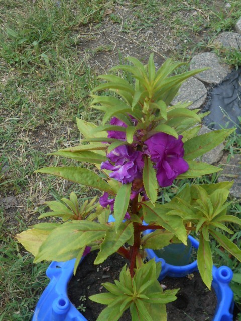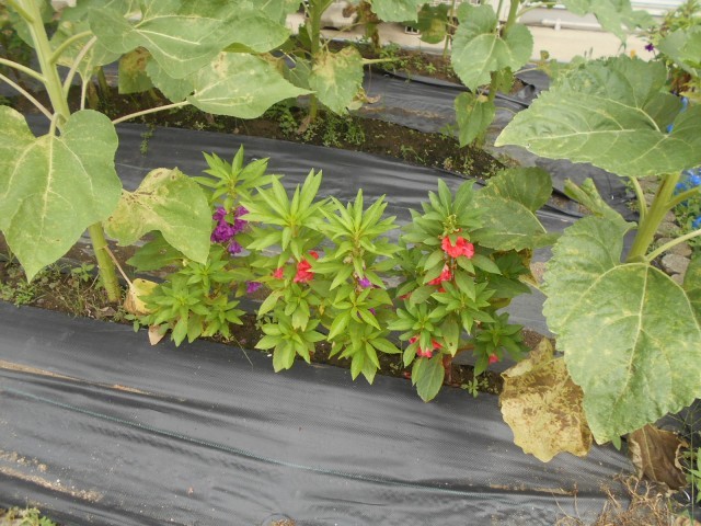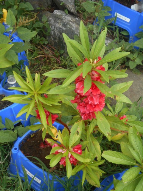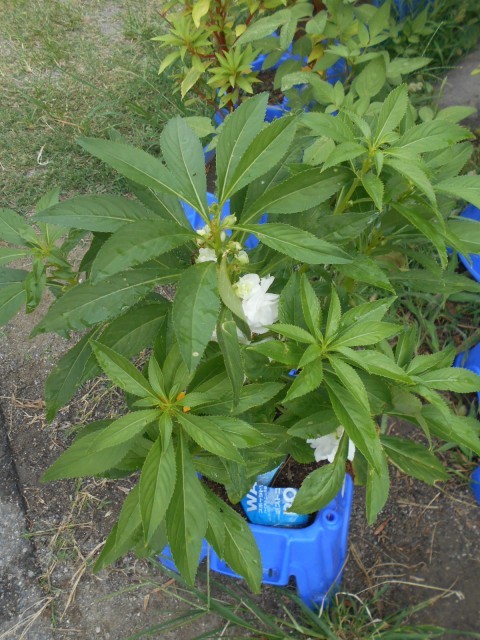 ホウセンカも赤に紫、今日は白色も咲いていました。