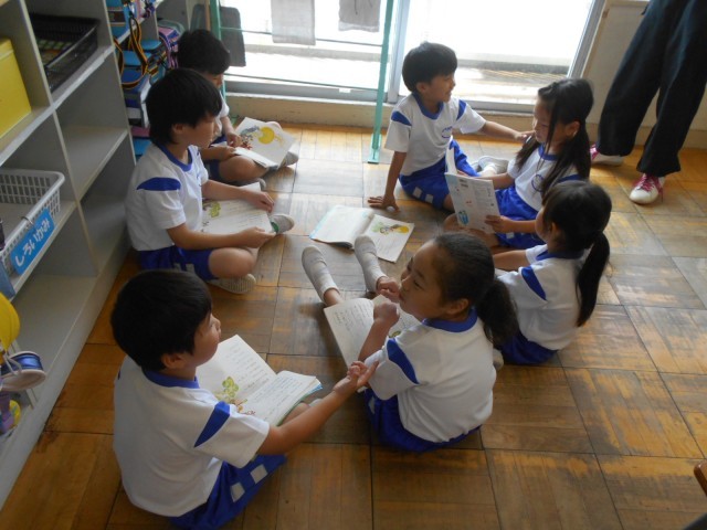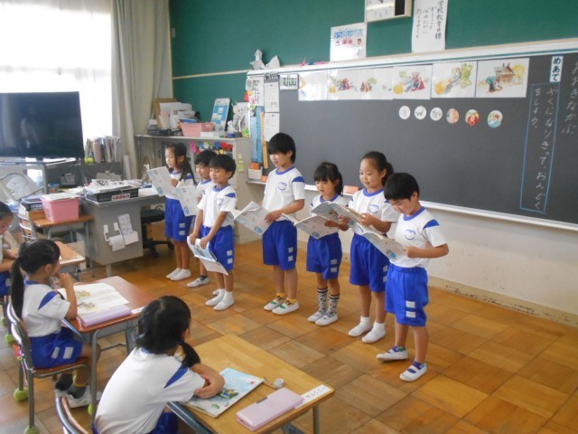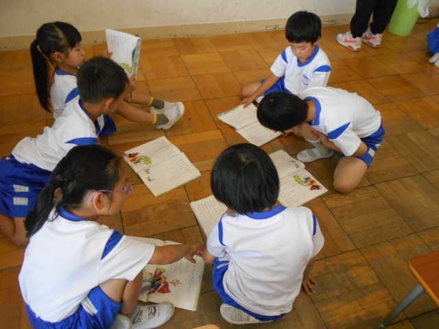 グループに分かれて、役を決めて、役になりきるためにはどんな読み方をしたらよいのかを考えながら、練習しました。