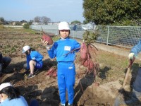 サツマイモ掘りの様子です。掘ってみると、立派なお芋がたくさんなっています。手で...
