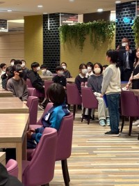 そろそろ消灯になります。各部屋、今日の振り返りをし、明日の準備をして、消灯準備に...