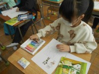 国語でつくったお話の清書をしていました。 選書なので、みんな真剣に取り組んでい...