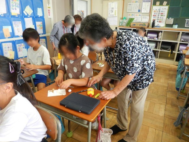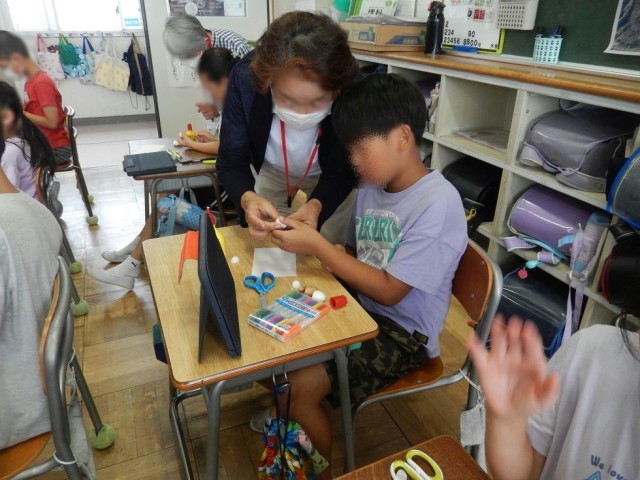 3年生が、更生保護女性会のみなさんに教えていただきながら「まゆクラフト」に挑戦しました。
