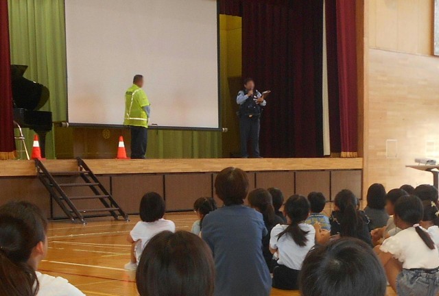 終業式の後、小野交番のお巡りさんから交通安全のお話がありました。