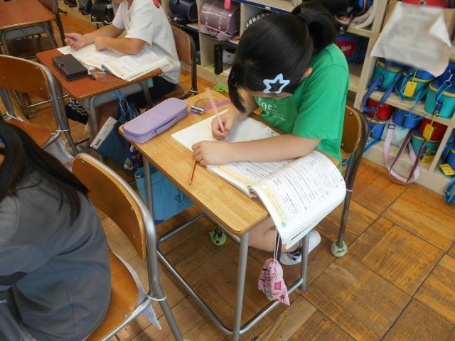 9月5日(金)授業の様子(4-2) 公開日 2025/09/05 更新日 2025/09/05 できごと 算数で「概数」を学習していました。 四捨五入する位に気をつけて、学習内容を確かめる練習問題を解いていました。