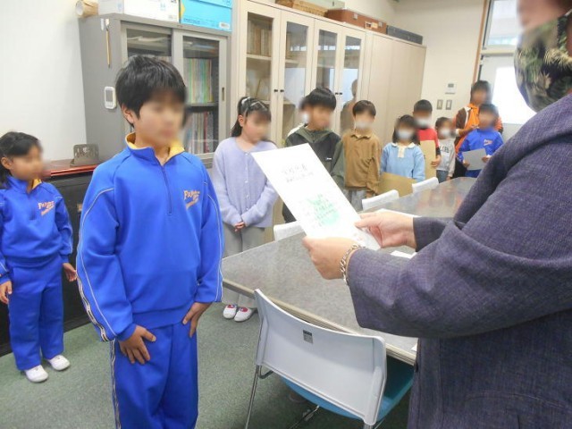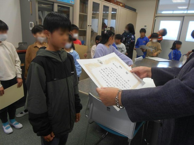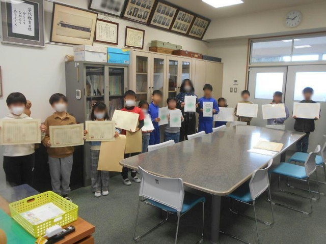 今日は、読書感想文、虫の絵作品展、高山社とカイコをめぐる絵 の入賞者の表彰でした。