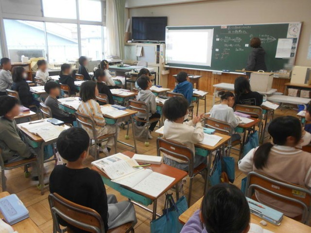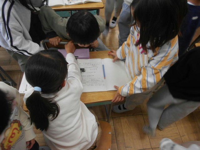 算数で「長さ」を合わせたり減らしたりする計算の仕方を考えている一場面でした。