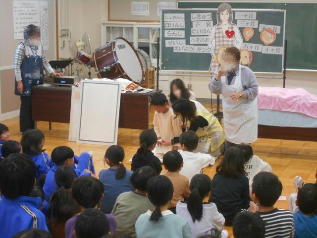 小豆のゆうな小さな命が、月を重ねるごとにだんだん大きくなっていくことや、お母さんと赤ちゃんの心臓の音や速さの違い、お母さんのからだの中で赤ちゃん動くことやへその緒でお母さんと赤ちゃんがつながっていることなど知り、2年生の顔がだんだん神秘的になっていくのがわかりました。