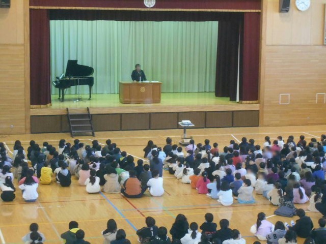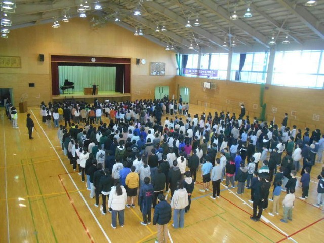 全校で歌う校歌。久しぶりでしたが、やっぱり気持ちがよいです。