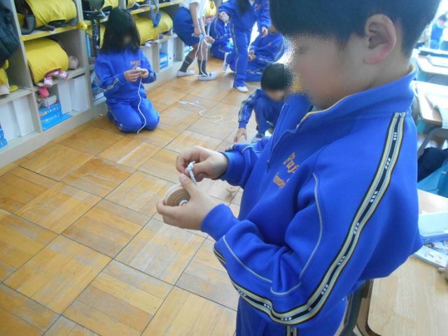 1月26日(月)授業の様子(1-3) 公開日 2026/01/26 更新日 2026/01/26 できごと 生活科の学習で、「むかしのあそび」をしていました。 紐を使ったコマ回しはなかなか難しいですが、コツがつかめると勢いよく回すことができていました。 今でも十分に楽しめる遊びでした。