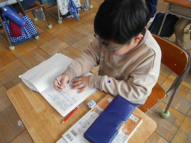 2月17日(火)授業の様子(ひまわり1組) 公開日 2026/02/17 更新日 2026/02/17 できごと 算数で、帯分数のたし算の仕方を考えていました。 ・整数と分数に分けて、それぞれ たし算する。 ・帯分数を仮分数にしてから たし算する。 慎重に計算しながら確かめていました。