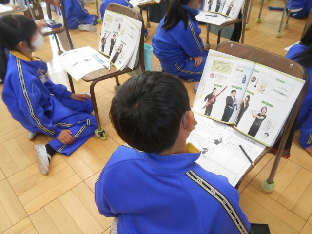 音楽で「木管楽器の特ちょうを見つけよう」をめあてに鑑賞していました。
