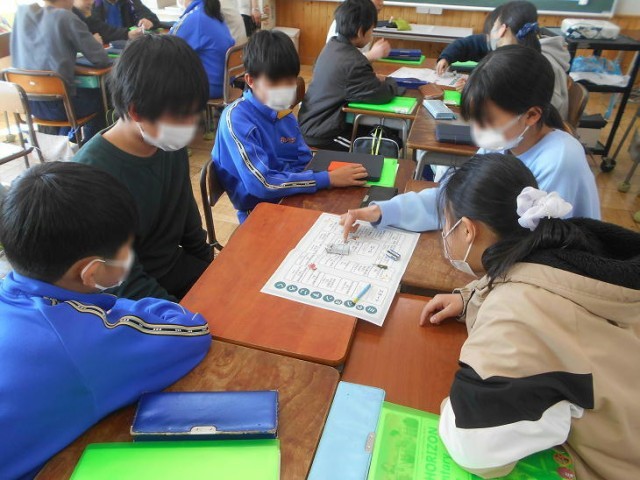 3月17日(火)授業の様子(6-2) 公開日 2026/03/17 更新日 2026/03/17 できごと 廊下に聞こえる盛り上がった声。 のぞいてみると、外国語で「ミッションすごろく」をしていました。 My best memory is ~. I usually go to bed at ◯p,m. など、すごろくのマスに記されたミッションを英語で答えながらゴールを目指します。 楽しく復習することができました。