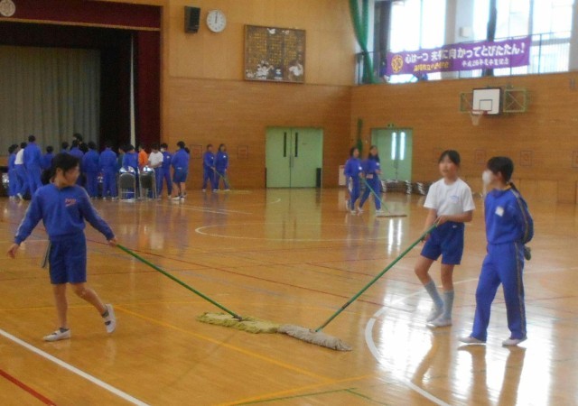 3月23日(月)体育館掃除(5年生) 公開日 2026/03/23 更新日 2026/03/23 できごと 6年生の愛好作業と同時に、5年生が、明日の卒業式の会場となる体育カットその周辺を掃除してくれました。 お世話になった6年生の晴れ舞台のために、一生懸命掃除してくれました。 午後は会場準備。 5年生のみなさん、ありがとうございました。午後も引き続きよろしくお願いします。