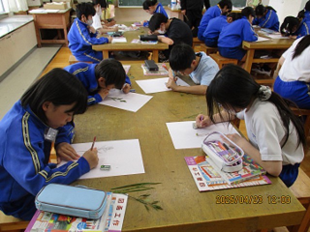 今日の図工の題材は「雑草図鑑」。身近に生えている雑草に着目して、スケッチしました。全員が雑草の細かい部分を詳細に描き込んでいました。集中力が素晴らしかったです。
