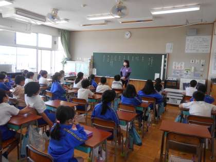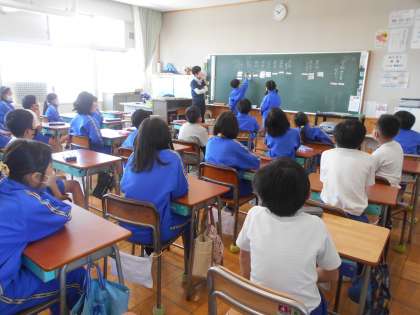 4年生の様子です。4年生になると教室が2階から3階になりました。なんだか少したくましくなったような気がします。