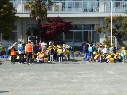 4月10日(月)全校集団下校 公開日 2023/04/10 更新日 2023/04/10 できごと 地区別集会のあとは、全校集団下校をしました。「自分の命を守るために、交通ルールがあること」「地域で本当にたくさんの方々が安全な登下校を見守ってくださっていること」の2点について児童と一緒に確認しました。また明日からも元気で会いましょうね! いつも児童の安心・安全のために支えてくださっている地域の皆様には、本当に感謝の気持ちでいっぱいです。どうもありがとうございます。