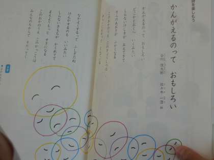 5年生の国語の授業も素敵な詩で始まります。「かんがえるのって おもしろい」教室では、5年生の児童が音読をしていました。