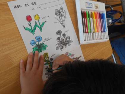 4月12日(水)1年生 生活科 図工 公開日 2023/04/12 更新日 2023/04/12 できごと 「はるに さく はな」校庭できれいに咲いている花を観察して、色を塗っていました。また、昨日は鉛筆の使い方も学んでいました。字を書いたり、色を塗ったり、どんどん色々なことができるようになっていきますね。