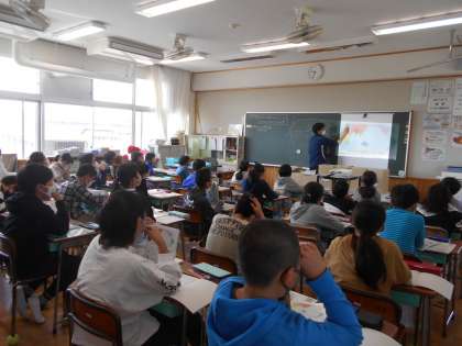 「世界の中の国土」を学習しています。「ここでは」地球の様子、世界から見た日本の国土などについて学びます。ちょうど教室では、経度や緯度という新しい言葉を学習していました。先生から教えてもらうと「へえ」「そうなんだ」など児童の反応を見ていると、社会科好きの5年生になるぞ!そんな期待がさらに膨らみました。