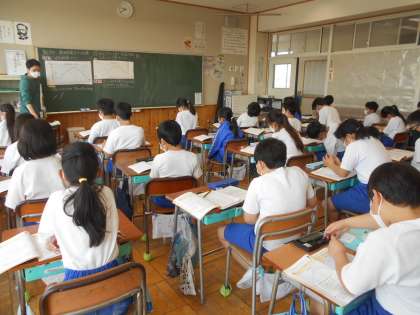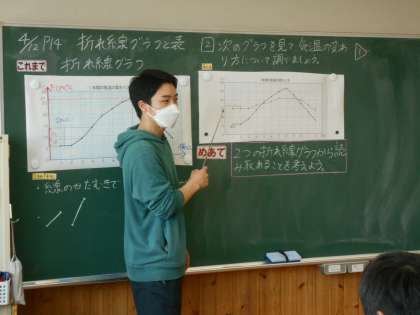 「折れ線グラフ」の学習が進んでいます。今日は、これまでと違って、2本の折れ線グラフが一緒になっているものを見て、その特徴をつかんでいました。東京の気温とロサンゼルスの気温を比較するグラフです。「ロスに大谷選手を見に行くときはさあ・・・」教室は盛り上がっていました。算数の勉強をしていてよかったなと思えることがこれからもたくさん増えていくことでしょう。