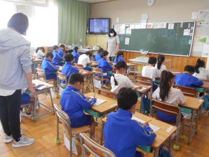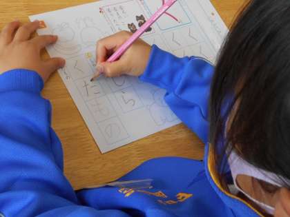 4月14日(金)1年生 国語 公開日 2023/04/14 更新日 2023/04/14 できごと よい姿勢で、鉛筆を正しく持って、ひらがなの学習を頑張っています。くまの「く」、くじらの「く」よく知っている言葉の中に含まれているひらがなです。どんどん書けるようになっています。