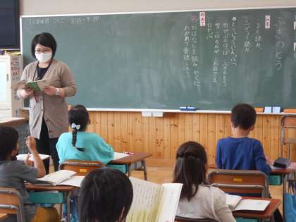 「ふきのとう」音読をしていました。「ここでは」語のまとまりや音の響き、場面の様子や気持ちなどに気を付けて、声に出して読むことを楽しみます。素敵なお話、楽しいお話、役にたつお話・・・これからたくさんの言葉や文に出会います。そんなときに、声に出して楽しむことができる2年生になってほしいです。